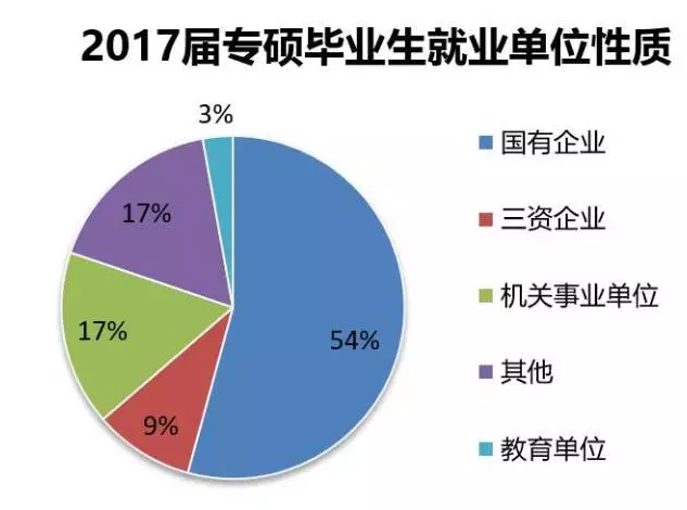 其次,按就业单位性质分类,过半的毕业生就业单位为国有企业;约17%的毕业生选择机关事业单位,如公务员单位、研究院、医院等;部分毕业生选择三资企业,以四大会计师事务所为主。