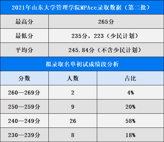 山东大学管理学院2021年非MBA类硕士研究生招生复试成绩及拟录取情况公示(第二批):会计专硕拟录取46人(包含少民计划1人)。