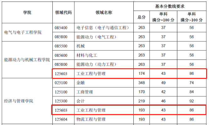 能源动力与机械工程学院2021年复试分数线为174/86/43