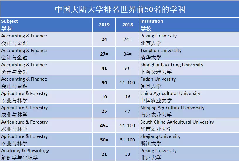 MPAcc备考网今天为同学带来的是《2019QS大学学科排名重磅发布》的消息:全球关注度最高的QS世界大学最新一期学科排名结果公布!中国大陆大学中,有96个科系排名在全球前50名,比2018年多了9个科系。此外,中国农业大学还首次进入世界前10名(第10名),清华大学和北京大学也都有学科进入了世界前十。