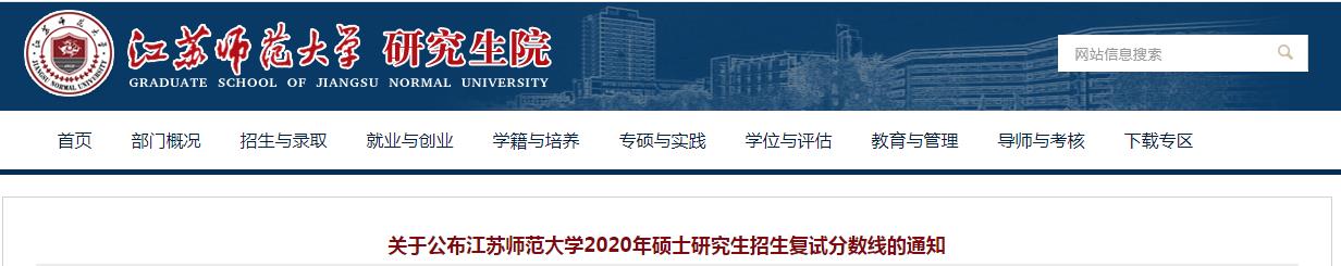 2020考研分数线:江苏师范大学2020年硕士研究生招生复试分数线公布!