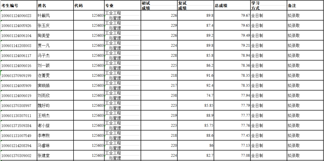 非全日制录取最高分:222分,