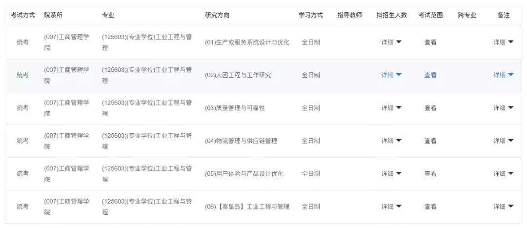 以下为东北大学工业工程与管理(125603)(专业学位)研究方向: