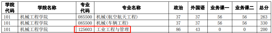 机械工程学院2021年复试分数线为200/86/43
