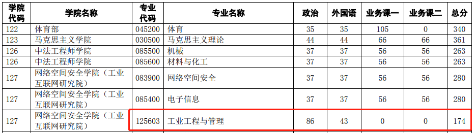 网络空间安全学院2021年复试分数线为174/86/43