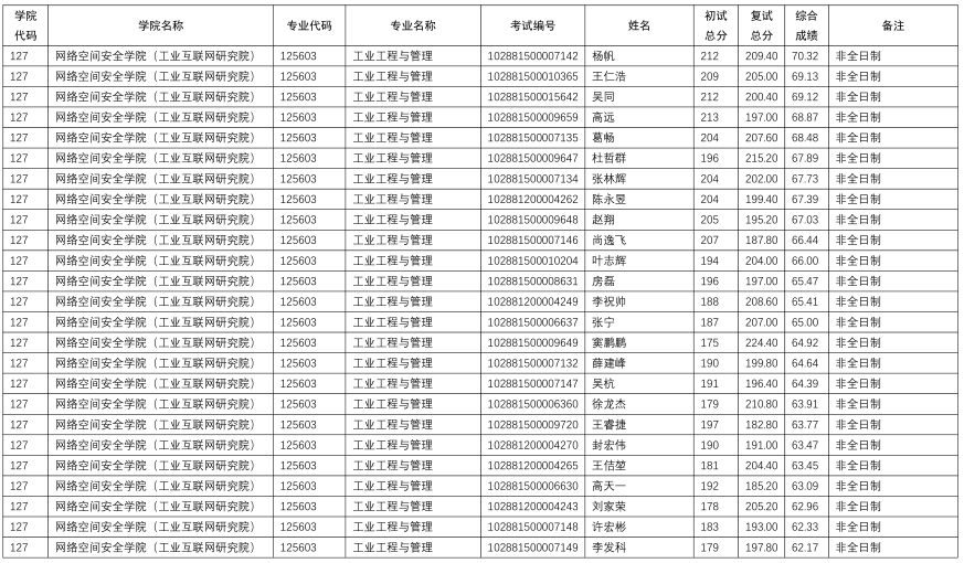 南京理工大学网络空间安全学院2021年工业工程与管理专业拟录取人数为非全日制30人(注:录取人数均为一志愿)