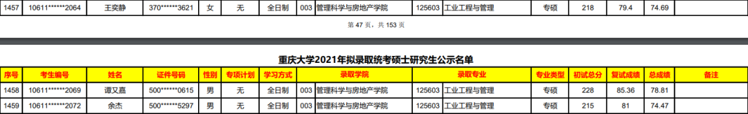 重庆大学2021年工业工程与管理专业拟录取人数为全日制3人