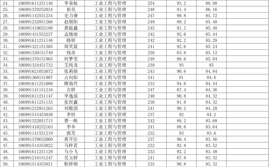 暨南大学2021年工业工程与管理专业拟录取人数为全日制49人