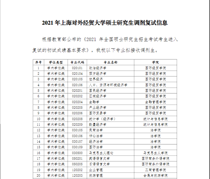 原文标题:2021年上海对外经贸大学硕士研究生调剂信息