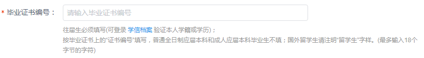 按学位证上的“证书编号”填写,高职高专、普通全日制应届本科和成人应届本科毕业生不填;国外留学生请注明“留学生”字样。