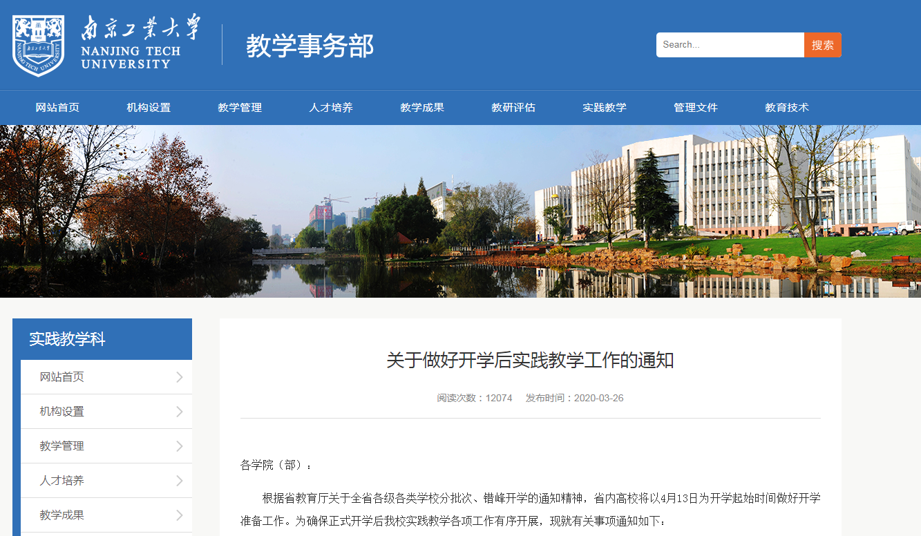 南京工业大学院校公告:关于做好开学后实践教学工作的通知