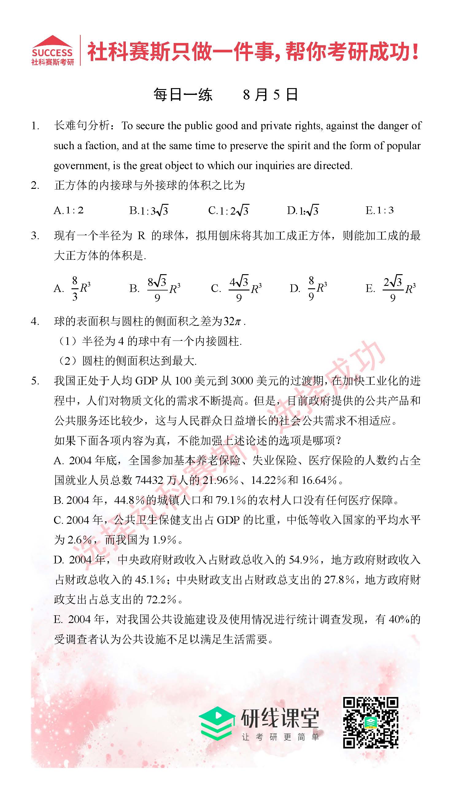2021MPAcc每日习题:管理类联考8月5日精选习题分享(附答案)