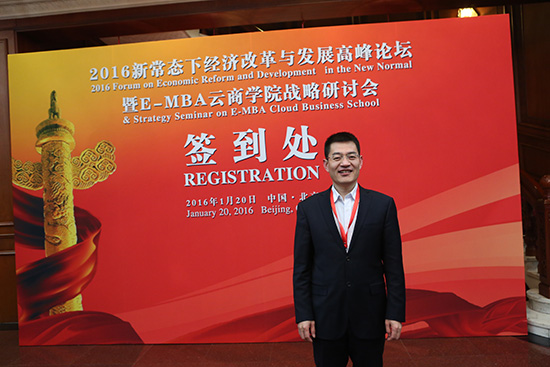 2016年1月20日,由E-MBA云商学院主办的“2016新常态下经济改革与发展高峰论坛暨E-MBA云商学院战略研讨会”在北京钓鱼台国宾馆隆重召开。200余名国家机关部委、地方政府、中央党校有关领导,以及知名媒体代表、MBA/EMBA学员代表、科研机构专家学者、经济企业家、商业协会及企业家代表、国有大中型企业高管代表齐聚一堂,共同探讨、交流、分享。北京社科赛斯教育校长李发进先生应邀出席会议。