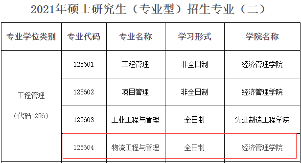 2021物流工程与管理招生信息:重庆邮电大学2021年物流工程与管理硕士招生专业目录